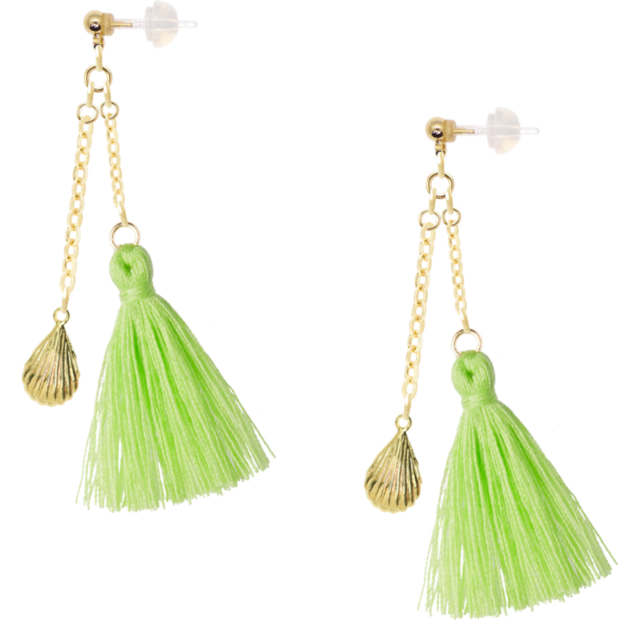 鮮やかなタッセルが風に踊り、シェルが光を映す。耳元にラグーンの爽やかさを。