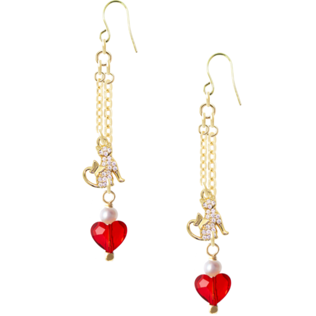 淡水パールポテト白とスワロフスキーライトライトシャムハートを組み合わせたデザインのラブリー・キャット。