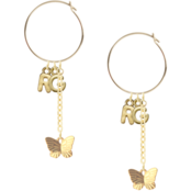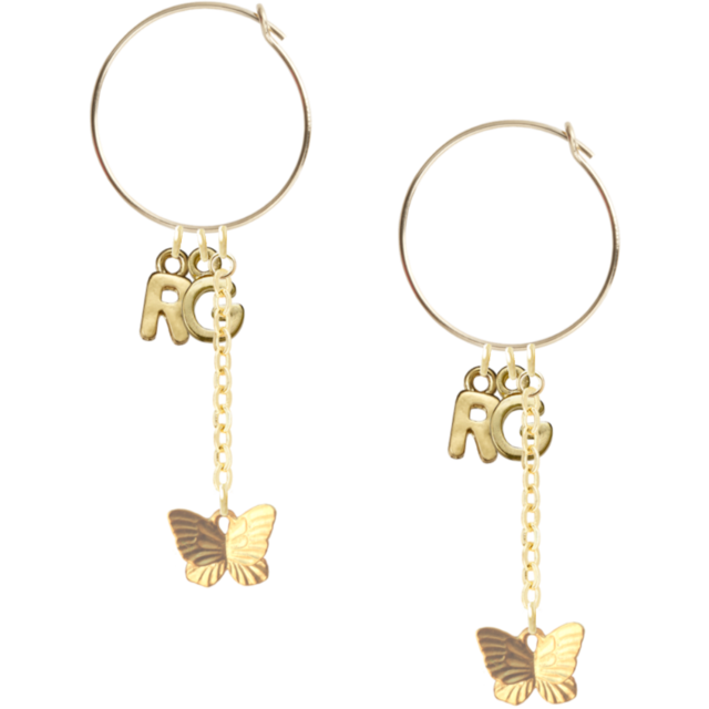 この美しいピアスは、イニシャルチャームRGとナチュラルテイストの蝶を組み合わせており、スタイリッシュでありながらも心温まる工夫が込められています。