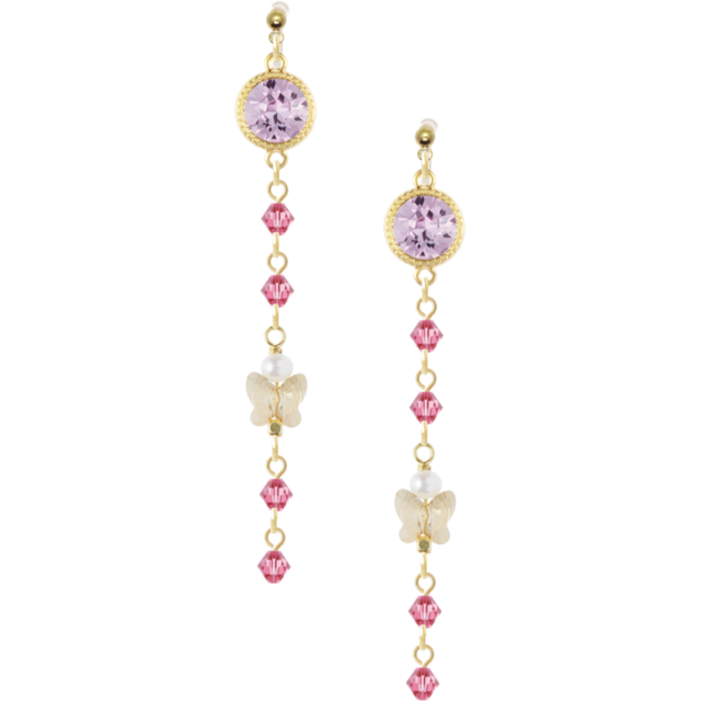 #スワロフスキー #パール #変形 #蝶 #ゴールデンシャドウ #金 #中間パーツ #真鍮 #丸 #ゴールド #紫その他 #紫 #イヤリング #アレルギー対応
